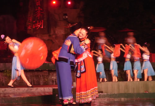 姑娘出嫁,為女人一生中最大的喜事,本應(yīng)充滿幸福、歡樂的氣氛。然而,舊時湘西、湘南、鄂西、川西(成都等地)、黔東(銅仁、凱里一帶)諸地,卻流行著一種與之完全相反情調(diào)的古老婚俗——“哭嫁”。也就是在姑娘“出閣”之前,不但新娘本人哭得很傷心,像淚人一般;而且,新娘的母親、姐妹以及姑媽、姨媽、舅媽及其他交往較多的女友,都要陪著新娘哭。湘西土家族哭嫁的風俗尤為普遍、濃厚,不但哭嫁的時間較長(少則十來天,多達個把月),而且哭嫁歌也保存得古樸、完整。 姑娘出嫁為什么要哭?哪有那么多的東西可哭?這是一種蘊含甚為豐厚的人生禮俗,也是一種饒有興趣的婚俗事象。 俗話悅:“人不傷心不落淚!惫媚锍黾拗砸,是因為在舊式婚姻制度下,女孩(尤其是勞苦大眾家庭的女孩)總是作為犧牲品“拋”(賣)給夫家的,她們的身心受到極大傷害。因此,湘西等地的女孩在出嫁之前要哭泣,要呼號,哭嫁歌就是感情發(fā)泄的最好表現(xiàn)方式。 哭嫁的源起 哭嫁的風俗,不知道起源于什么時候。戰(zhàn)國時期,趙國的公主嫁到燕國去作王后,她的母親趙太后在臨別時"持其踵,為之泣,祝曰,必勿使返。"大約就是后來長盛不衰的哭嫁風俗的濫觴了。 這種風俗,直至清末還盛行于四川農(nóng)村中,隨地區(qū)變化而大同小異。解放前,聽老人們說,早些時候,沒有嫁而不哭的人家。如果出現(xiàn)嫁而不哭的姑娘,也會被鄰里看作沒有教養(yǎng)的人,傳為笑柄;相傳有出嫁姑娘不哭而遭母親責打的事,這位母親當然算得上是入流導演了。 舊時宣講故事中,有花轎臨門,父親強令哭《迎風罵媒歌》的情節(jié),可知哭嫁是有歌詞的,帶有表演性質(zhì),原是用來渲染氣氛,以悲襯喜;不過,因為婚姻是包辦的,真哭真罵的也不會少。 抗日戰(zhàn)爭后期,風氣較開,哭嫁之風已不盛行,而老人們卻還在津津樂道,哭的方式是,從婚期前一個月的首日起,入黃昏,姑娘訴哭約一個小時,其聲嗚嗚。十天以后,她的母親加入"陪哭";又十天以后,她的祖母加入陪哭。這家沒有諸姑姊妹,人們說,如果有的話,也應(yīng)當加入陪哭行列的。 哭嫁在川西叫"坐堂"。清代吉道人《味蔗軒隨筆·坐堂詞》云:"婚姻之禮,各省風俗不同。然酌禮準情,各省亦大同小異。凡男家娶婦先賦之詩,謂之'催妝';女家親串頌女之詞,謂之'坐堂'。坐堂者,女當喜期將近之先數(shù)夕,其諸姑伯姊,置酒為女祖餞,各述吉祥之詞,以為頌美,女則申己之意以答。女左右更有少女,則隨而嫻習者也。其詞要多鄙俚,然有音韻凄清,風格遒勁,如古歌古謠者。羅江明府蔡,微服巡查鄉(xiāng)里,一日行至某處,值有女子歸,諸娣姒咸以諛詞頌女,女申意以答。忽風吹句入耳,詞曰:'鳳凰落在桌子上,哪個女兒肯離娘'。一字一轉(zhuǎn),音韻凄其,誰謂天籟之鳴,不在愚夫愚婦耶!"云云。吉道人姓周名際唐,成都人。吉道人記得明明白白,可惜他只記了一句哭嫁詞,難窺全貌。好在舊時坊間叢刻中有《訓女哭嫁》一種,可見一斑。這本小書的目錄有《閨聲哭》、《娘訓女》、《嫂哭妹》、《哭爹媽》、《哭哥嫂》、《花轎到屋哭》、《哭叔爺》、《哭兄弟》、《哭外公外婆》、《哭舅爺》、《拜香火哭》等等,編次有點凌亂,似乎隨手所記,未經(jīng)文人之手。遙想《詩》十五國風未刪之時,大約也不過如此吧! 閨聲哭 娘聽后園鳥雀驚,要聽房中女兒聲。 我娘當門苦葛藤,手攀苦葛訴苦情。 我娘苦情苦過了,女兒苦情才起根。 ............ 桔子開花葉子青,陽雀開聲我開聲。 新打銅盆才裝水,新打剪刀兩面青。 娘不開口我開口,娘不開聲我開聲。 當門一根木蓮樹,目連樹上掛卷經(jīng)。 一本經(jīng)書背完了,未見我娘來開聲。 虧了我娘睡得穩(wěn),爹媽眼淚貴如金。 哭爹媽 月亮彎彎照華堂,女兒開言叫爹娘。 父母養(yǎng)兒空指望,如似南柯夢一場。 一尺五寸把兒養(yǎng),移干就濕苦非常。 ............ 勞心費力成虛恍,枉自爹娘苦一場。 哭兄弟 黑漆茶盤烏木頭,姐姐離娘弟不留。 留到姐姐吃你飯,留到姐姐穿你衣。 兄弟當家掙家忙,嫁了姐姐買地方。 上頭買齊潼川府,下頭買齊遂寧鄉(xiāng)。 ............ 這個本子所記是川北的歌詞,以前所見的是川南,吉道人所記的是川西,川東,大約也不會大異的。遺憾的是,該書所記哭嫁詞雖有"只怨媒人莫良心"等語,卻沒有列出"罵媒專目,大約是怕媒人太難堪了吧! 其實,罵媒是哭嫁中必不可少的節(jié)目,也是最具反抗色彩的哭嫁歌詞。舊社會,婦女無婚姻自由可言,由于"三從四德"的束縛,平時對于自己的終身大事幾乎不能置一詞,全由媒人和父母擺布;因此,這登花轎之前的"罵媒",便是難得的發(fā)泄機會。這早已反映在戲曲和民間說唱等藝術(shù)之中。 以前,川劇《柳蔭記》有《英臺罵媒》一折,英臺罵媒人,言詞激烈,聲色俱厲,充分表現(xiàn)了祝英臺剛烈的性格和反封建精神。她罵道:"提媒婆,更恨她,胡言亂語嘴喳喳......唯愿你,房屋遭火化,田園水推沙。"但這場戲現(xiàn)在卻被刪掉了,五六十年代還有的,全國第一屆戲曲會演的川劇《柳蔭記》也有這一折,是陳書舫演的祝英臺,得了一等獎,F(xiàn)在城里人大約以為媒婆不必罵了,但偏遠地區(qū),媒婆似乎還在肆虐。不過,據(jù)說,媒人從來不怕你罵,反倒怕你不罵;你不罵,他的"霉(媒)氣"反而脫不了。這也是風俗民情中的一種幽默吧! 在三峽民間,特別是在巴