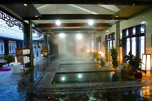 溫泉區(qū)的右方,集中了六個特色小溫池“六福湯”,這里能讓您感受到人參、蘆薈、靈芝、當歸、薄荷、艾葉三丫苦六種溫泉的神奇魅力和中醫(yī)藥文化的博大精深。溫泉的理療作用已補越來越多的熱愛健康的人士所接受,能起到舒筋活絡(luò)、強身健體、潤夫養(yǎng)顏、安神、抗衰老等保健作用。隨著人們生活水來的提高的旅游觀念的發(fā)展,溫泉休閑旅游已成為一種時尚。