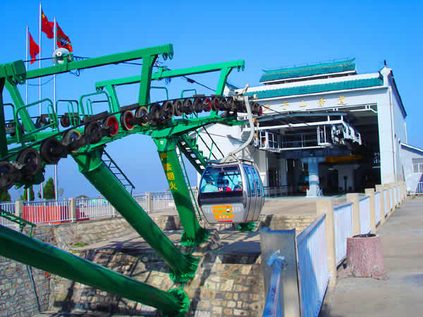 湖南武陵源索道有限公司成立于1995年12月7日,武陵源區(qū)人民政府和香港安達(dá)國際度假樂園(張家界)有限公司簽約,是由香港安達(dá)國際有限公司投資的外商獨(dú)資企業(yè)。1996年6月動(dòng)工興建天子山索道,1997年5月正式對(duì)外營運(yùn)。天子山索道是單線循環(huán)式脫掛抱索器客運(yùn)索道,全部設(shè)備自奧地利Doppelmayr公司進(jìn)口。設(shè)計(jì)水平線1960m,斜線長2084m,兩端站高差692m。配單線自動(dòng)循環(huán)車廂41個(gè),每車廂載6人,運(yùn)速5m/s,每小時(shí)單向運(yùn)量900人。索道動(dòng)力電,采用雙電源;配備有應(yīng)急備用柴油機(jī),用于停電或發(fā)生設(shè)備事故時(shí)緊急疏散游客。