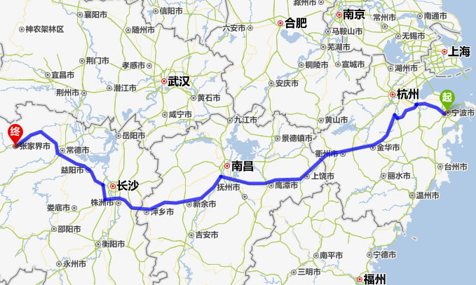 現(xiàn)在位置:張家界旅行社->交通指南->自駕車路線 -> 寧波到張家界旅游自駕車線路,寧波去張家界自己開車要多長時(shí)間,有多少公里