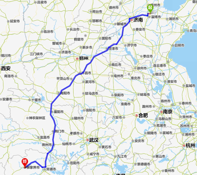 桓臺(tái)縣去張家界自駕車(chē)自助游線路圖全程高速):