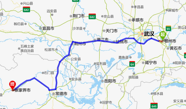 鄂州去張家界自駕車自助游線路圖全程高速):