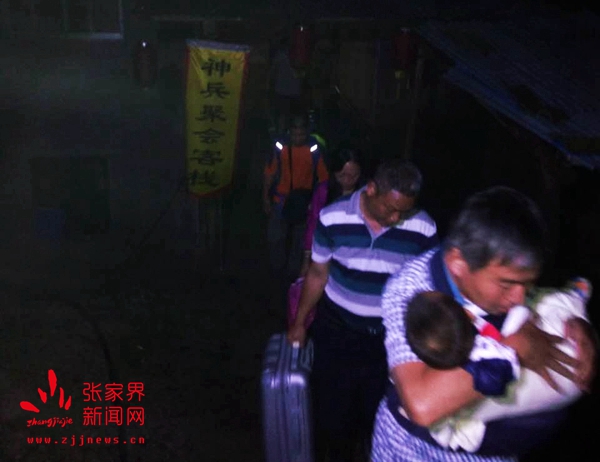晚上9時(shí)許,由天子山景區(qū)管委會(huì)干部職工、居委會(huì)居民組成的應(yīng)急隊(duì)伍冒雨趕到老屋場(chǎng),對(duì)入住游客和當(dāng)?shù)鼐用褚灰贿M(jìn)行耐心解釋,勸導(dǎo)他們連夜轉(zhuǎn)移到安全地帶。
