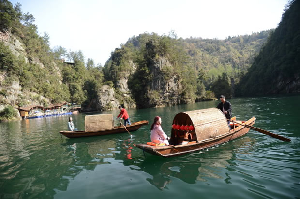 “在高峽平湖中,我們看到了張家界山水的純凈,也感受了這里人文的多彩!币慌鷣碜蕴﹪娜A裔游客當天游覽景區(qū)后開心地說。在他們眼中,寶峰湖的春天風景獨好,四周山巒山花競放,五顏六色絢麗無比,就連湖面倒影也十分迷人。而導游員熱情洋溢的講解和山歌船飛出的原生態(tài)民歌,以及烏篷船上身著民族服裝的阿哥阿妹,都是他們張家界之旅不容錯過的人文風景。