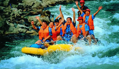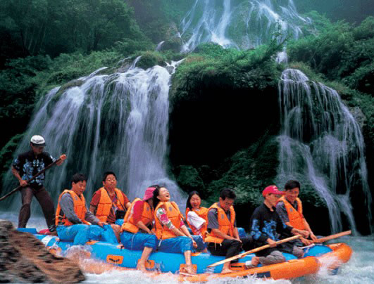 上 午:乘漂流公司專線車赴【猛洞河漂流】,(門票已含)赴漂流上站碼頭,體驗“天下第一漂”,起點哈妮宮距王村約40公里,行車1小時,終點牛路河距王村30分鐘的車程,漂流水路長17公里,漂流兩個半小時。從哈妮宮放舟而下,一路是古老的河道,哈妮宮、山腳巖、捏土瀑布、回首峽、落水坑瀑布、夢思峽、牛路河大橋等景點。絕壁百里,怪石嶙峋,灘奇水異,兩岸蒼翠的林木,云霧繚繞,飛瀑流泉與溶巖峰林交相輝映。拐一百五十五個彎,在一百三十三個灘潭中穿梭而行,迂回流連,馳魂奔魄,心曠神怡。猛洞河漂流被著名的社會學(xué)家費孝通先生譽為“天下第一漂”;